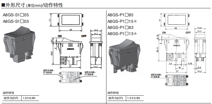 A8GS 遠程復位 船形開關 帶復位功能船形開關 利用基于外部信號的 “復位功能”關閉電源開關,設備的待機功率為零。 適用于浪涌較大的負載的電源ON/OFF。適用于TV-8(浪涌特性117A)。 備有適用于微小負載領域的接點構造種類。 備有可同時ON/OFF微小負載領域、高負載領域的2極規格種類。 接點間隙大于3mm。 取得UL、cUL標準認證,并符合EN標準。